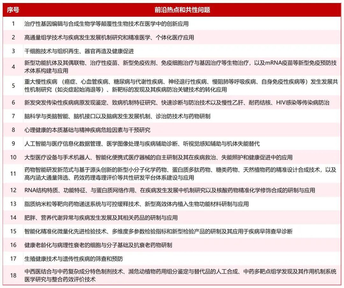 三、生物医药领域需要重点关注的前沿热点与共性难题