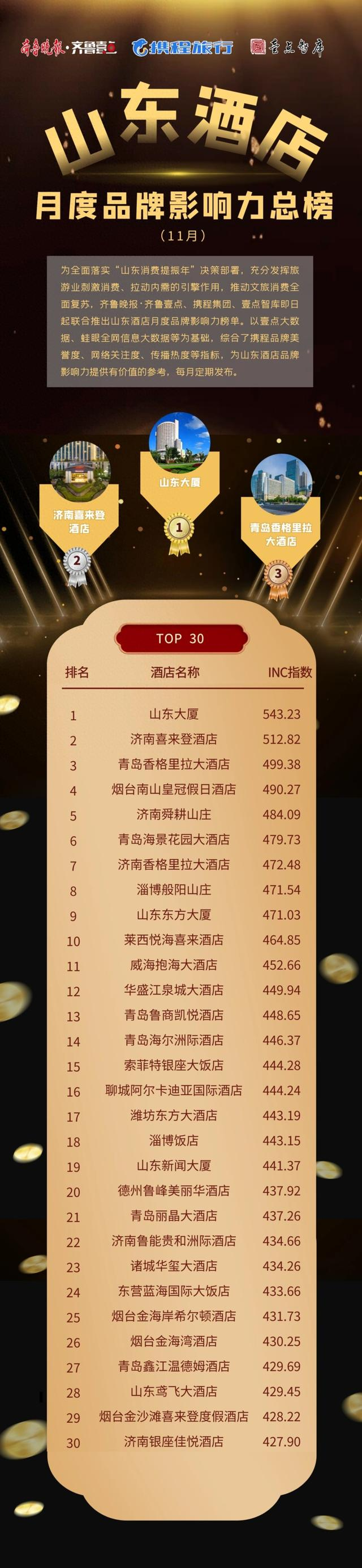山东酒店月度品牌影响力榜单(2023年11月)发布