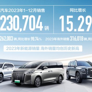 坦克品牌方面,2023年12月销售17312辆,2023年累计销售162539辆,同比增长31.21%,其中,坦克Hi4-T车型累计销量33993辆;坦克300上市3周年,已累计拥有28万车主。截至目前,坦克品牌累计销量突破37万辆,连续36个月蝉联中国越野SUV销量第一,已成为新能源越野车用户的第一选择。2023年,坦克以“越野+新能源”技术路线,越野超级混动架构Hi4-T为基础,布局越野新能源家族矩阵,拓展越野用户使用场景,成为兼顾城市与越野、商务与家用、豪华又节能的新选择。