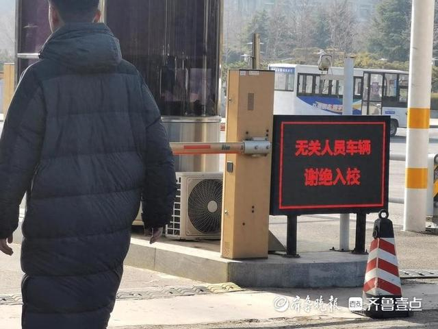 在济南市长清区,大学路上的车辆川流不息,相较之下,偌大的校门口却行人寥寥,偶尔有学生骑着电动车匆匆驶过,校园周围没有了往年的热闹气氛。在山东师范大学长清湖校区西门,一块醒目的电子屏上正循环播放着“无关人员车辆谢绝入校”“办理公务人员请主动出示审批单并刷身份证识别通行”等字幕。一位家住附近的居民说:“这样的通知相当于把大家挡在了校门之外。”