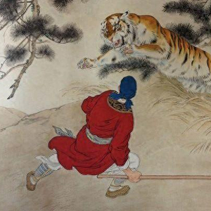 武松打虎是施耐庵所著《水浒传》中的著名故事,主要讲述武松回家探望兄长,途经阳谷县的景阳岗时,至酒家沽饮十八碗,醉后欲行赶路。酒家告以岗上有虎伤人,劝其勿行,武松不信,在岗上果然遇到一条“吊睛白额大虫”。武松奋起平生之力,以双拳将虎打死。