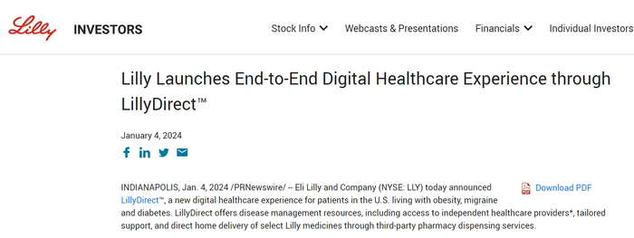 礼来公司首席执行官David Ricks在接受采访时表示:“我们已经习惯了在网上直接从制造商那里购买消费品。但对于对于处方药来说,以前确实没有提供过这样的选择。”