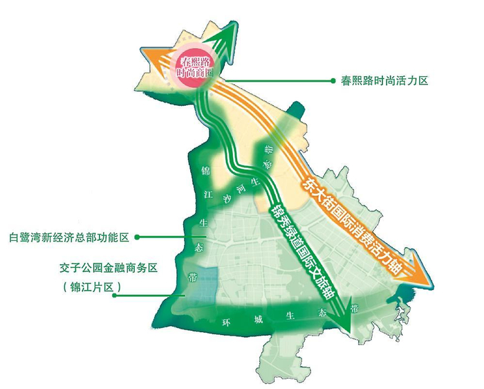 东大街国际消费活力轴、锦秀绿道国际文旅轴