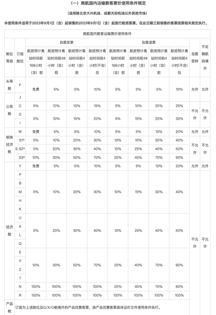 南航成为国内首个明文规定机型变更可以免费退改的航司。