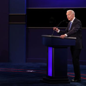 当地时间2020年10月22日,美国田纳西州纳什维尔市,特朗普和拜登举行大选前的最后一场电视辩论。图/IC photo