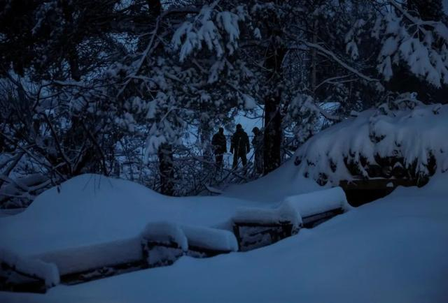 当地时间2023年12月14日,乌克兰与白俄罗斯边境附近切尔诺贝利禁区 ,俄乌冲突持续,乌克兰士兵坚守阵地。图/IC photo