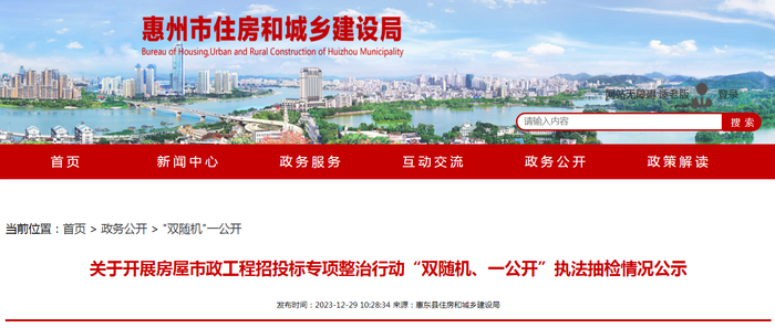 广东省惠东县住房和城乡建设局关于开展房屋市政工程招投标专项整治行动“双随机、一公开”执法抽检情况公示