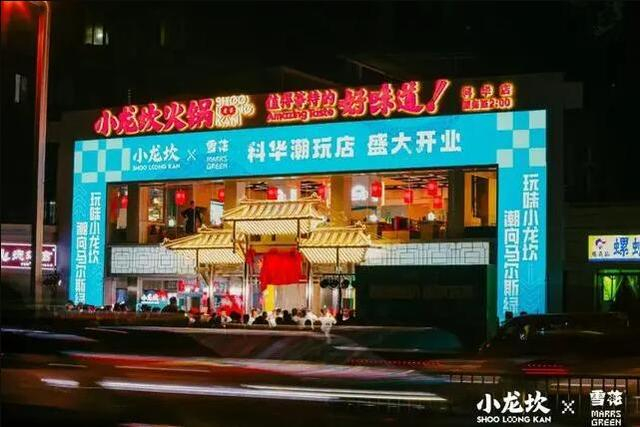 与此同时,不少品牌选择在外观上下功夫。好利来通过频繁焕新包装与视觉设计,从哈利波特、奥特曼到LINE FRIENDS、泡泡玛特,次次都能靠颜值俘获年轻人芳心。小龙坎不拘泥于品牌类别,与高端啤酒雪花马尔斯绿合作打造荧光潮玩店,为年轻人开辟新型社交场所;与游戏《花亦山心之月》合作打造水墨国风店,引得游戏粉和火锅粉“双厨狂喜”。