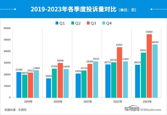 如图所示,2023年四季度投诉量呈现冲高回落态势,较三季度有明显下降,但与2022年同期相比仍有大幅提升,2023年四个季度的投诉量总和已超过16万宗。