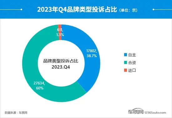四季度,合资品牌的投诉量和占比均较三季度有所提升,其中占比已达总量的六成,投诉量环比上涨5.9%,再次刷新近六年来的最高纪录。