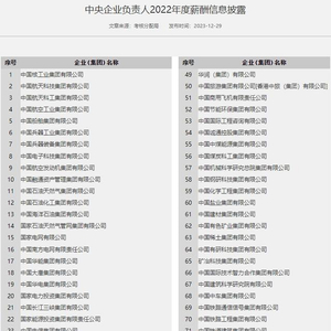 中国经济周刊—经济网讯 近日,国务院国有资产监督管理委员会网站披露中央企业负责人2022年度薪酬信息,96家央企分别公布了相关负责人年薪收入情况。