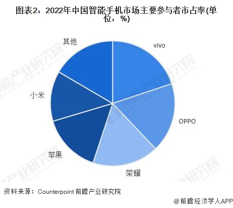2022年第三季度,中国智能手机市场呈现出相对稳定的竞争格局。前五大品牌商包括vivo、荣耀、OPPO、苹果和小米。其中,vivo(包括iQOO)以19.9%的市场份额稳居第一,OPPO(包括OnePlus)以18%的份额位列第二,荣耀以17.2%的份额排名第三。