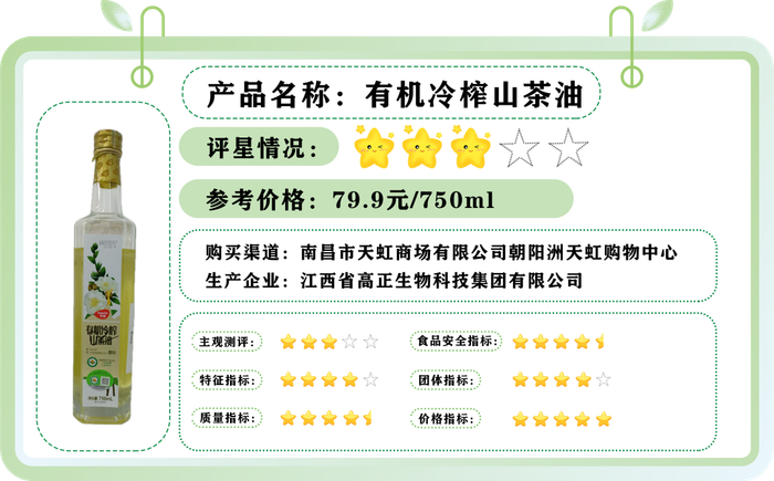 根据本次比较试验结果,江西省消保委提醒广大消费者,在选购山茶油时注意以下几点:
