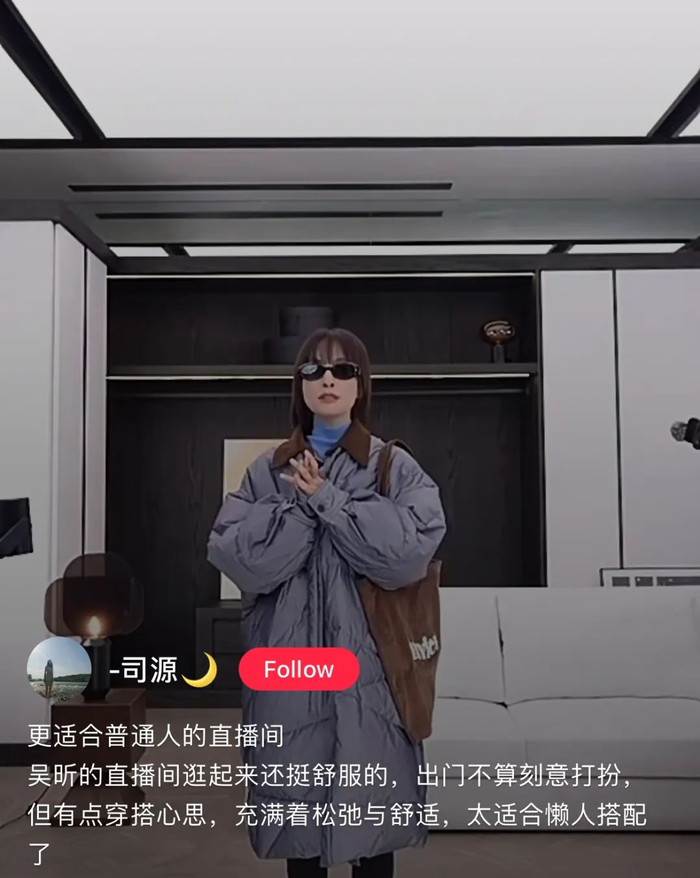 直播间里,每说到一件衣服或者一件好物,吴昕都言之有物。既有自己的想法,也有自己的审美和见解。