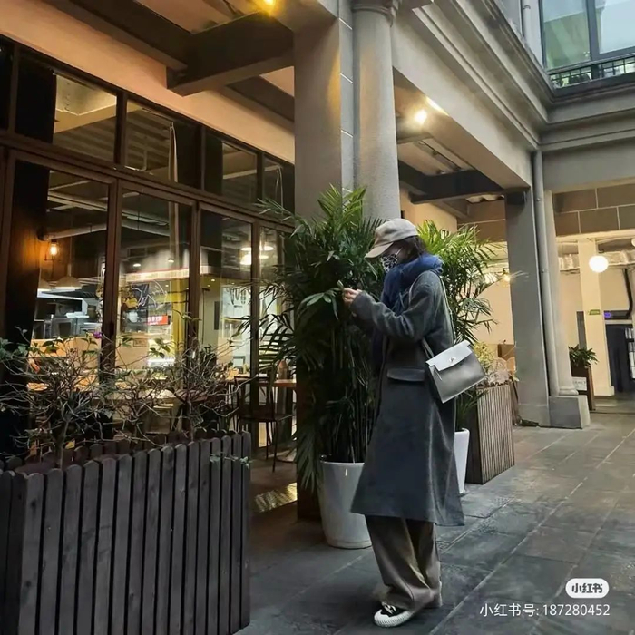 除了奢华款,平时走可爱风的吴昕还有一只爱马仕已经绝版的花园包,garden party mini,自己搭配了一个玩偶小飞象,整套look优雅又不沉闷。