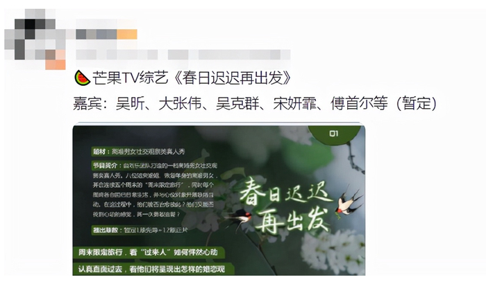 2022年的上星情感综艺《春日迟迟再出发》也拟定吴昕为常驻主持人。