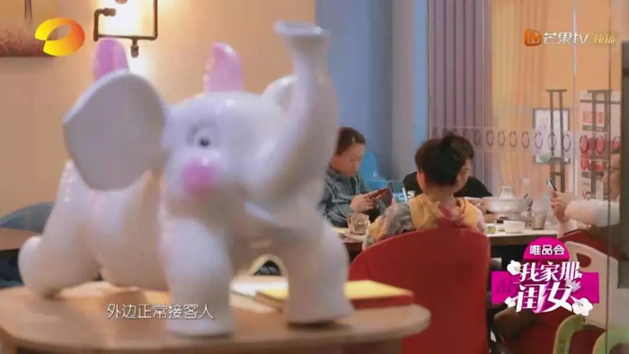 在《我家那闺女》节目中吴昕就带大家参观了她的泰式餐厅,餐厅大门口摆放了一只她自己的品牌小飞象的陶瓷玩偶。