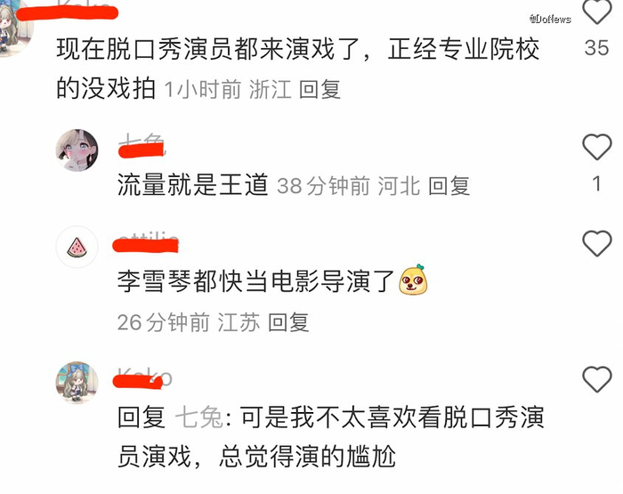 当然,近年活跃在荧屏上被认可的演员们也并非全科班出身,半路出家大红大紫的不在少数,舞蹈演员、歌手、网红转型大有人在,甚至素人草根的崛起也随着媒介的丰富成为可能。对脱口秀演员们转型的口诛笔伐并非眼红或有意针对,就像前文提到的,被“狙”的理由只有一个:不专业。