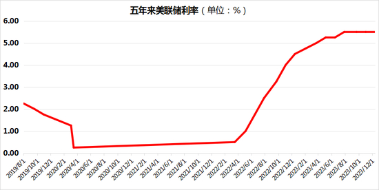 展望2024年,市场普遍预期流动性将变得更为宽松。回顾美联储的数据,我们发现其加息周期始于2022年3月,利率从0.25%逐渐上升至0.5%。随后,美联储进行了10轮加息,利率在2023年7月达到5.5%的峰值。然而,在短短的1年半时间里,美联储将利率提高了超过500个基点,这也带来了一系列负面影响。