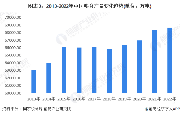 2023年,中国粮食产量再创历史新高,连续9年稳定在1.3万亿斤以上。