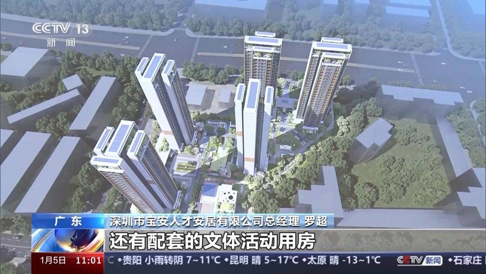 深圳市宝安人才安居有限公司总经理 罗超:其中69平方米两房两厅568套,89平方米三房两厅232套,计划总投资约11.8亿元。项目计划建设5栋塔楼和一个幼儿园,还有配套的文体活动用房,基本满足周边的民生需求。项目计划于2026年底基本达到入住条件。