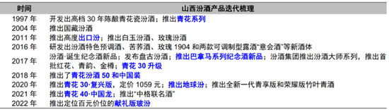高端产品方面,山西汾酒早在1997年和2004年就推出了高端的青花系列和国藏汾酒,但是很长一段时间内没有成功培育出大单品。成为山西汾酒行业第三争夺战中最大的障碍。