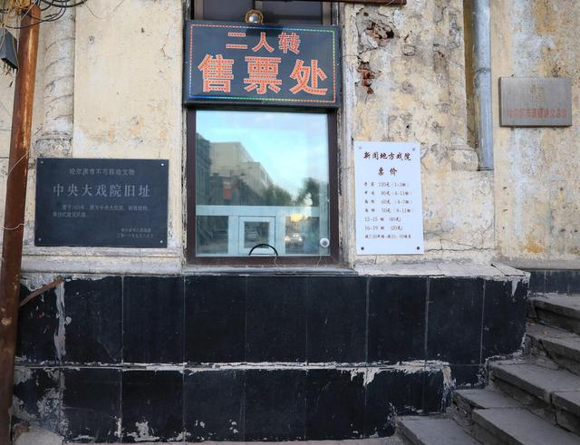 新闻电影院有八九十年历史了,初建为中央大戏院,后改为水都电影院,是哈尔滨最早放映有声电影的地方。老哈尔滨人对它记忆较深,刚解放的时候,电影开映前,都要先放一段关于解放战争的纪录片。“新闻电影院”的金字招牌,就像老旧的金冠,还在两个洋葱头尖顶之间闪光,但这里已不放映电影了。一二楼外墙间镶嵌的白字匾额,像一线永不消融的雪,明确昭示着它现今的用途“哈尔滨地方戏院”,成为二人转演出的专属场地。而它的一楼和地下室,部分出租,用于商业,所以在这幢楼上,能看到黑地黄字的“寄卖行”招牌,也能看到白匾黑字的“中医骨科诊所”等。窘迫与富贵,病痛与欢乐,汇聚一堂,难解难分。有人说它最早做过张学良公馆,但未得到城史研究专家的认可,但它做过旧时“道德会”分会的宣讲堂,却是无争议的,砖墙上挂着一个纪念招牌,看来劝善也曾是戏园的主调。