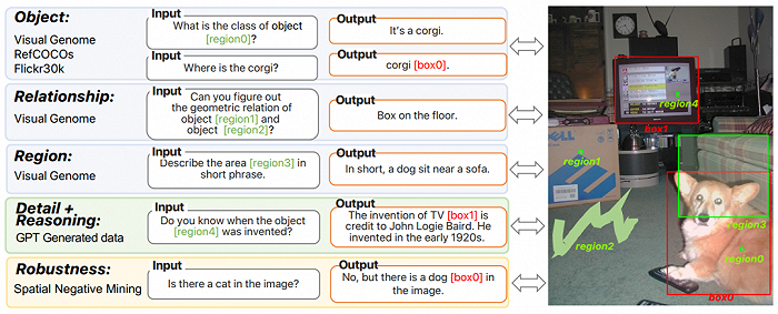 这种多模态理解能力,使得Ferret能够同时处理用户输入的图像和自然语言,并且由于其算法能够将图像中的元素准确拆分、定位,Ferret可以准确理解如“图片右上角”、“靠近沙发”这类指令。