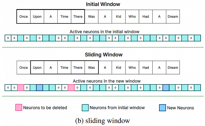 这就是sliding Window的核心思想:查缺补漏,多退少补。在大模型运行过程中,只保留一开始就激活的神经元,后续的每次运算,都基于前一次参数进行删除和添加,省去了一部分重复工作。