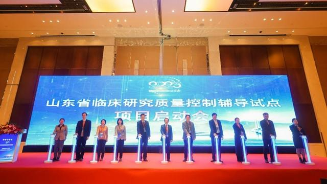 与会领导共同按下启动柱,山东省临床研究质量控制辅导试点项目正式启动。