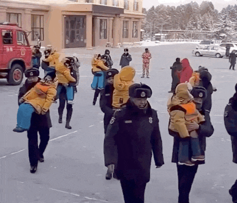 在漠河北极村消防站,“小砂糖橘”还得到了“一对一”的照顾,被消防员宠到路都不用走↓