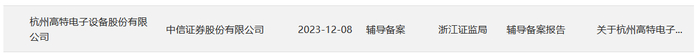值得一提的是,高特电子已于2023年12月8日在浙江证监局备案,拟首次公开发行股票并上市。目前,中信证券为其辅导机构。