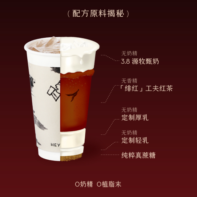 1月2日,喜茶发布2023年度报告,其中发布了2023年喜茶的年度品质事件——配方原料公开。目前,喜茶已率先在行业内公开60多款产品的配方原料信息、超70种真茶、真果、真奶、真糖等原料溯源信息,产地涉及全球10多个国家和地区,以及国内超20个省份40多个市县,开启了新茶饮行业的“配料表时代”。此次新品“绯红厚乳茶”亦是同步公开了配方原料,再次强调了“0奶精”、“0植脂末”。
