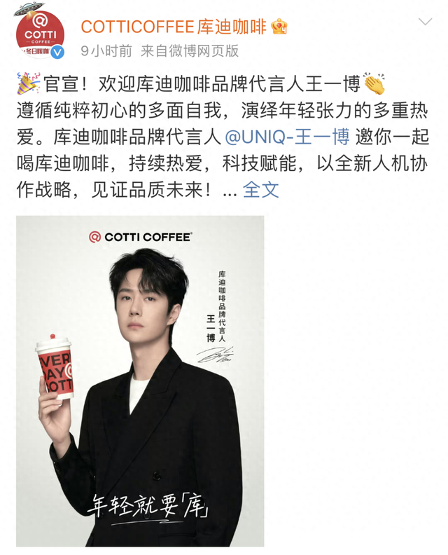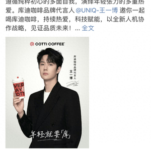 今日上午,库迪咖啡官宣王一博成为品牌代言人,在粉丝及年轻客群中迅速引发关注。