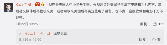 也有不少博主建议留学生们清空手机和电脑内容,卸载社交媒体后,或者恢复出厂设置后再登机赴美。