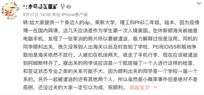 而且,这早已不是第一次有留学生在机场遭遣返,曾有三名中国留学生从休斯敦机场遭遣返,原因竟是手机里有军训照???