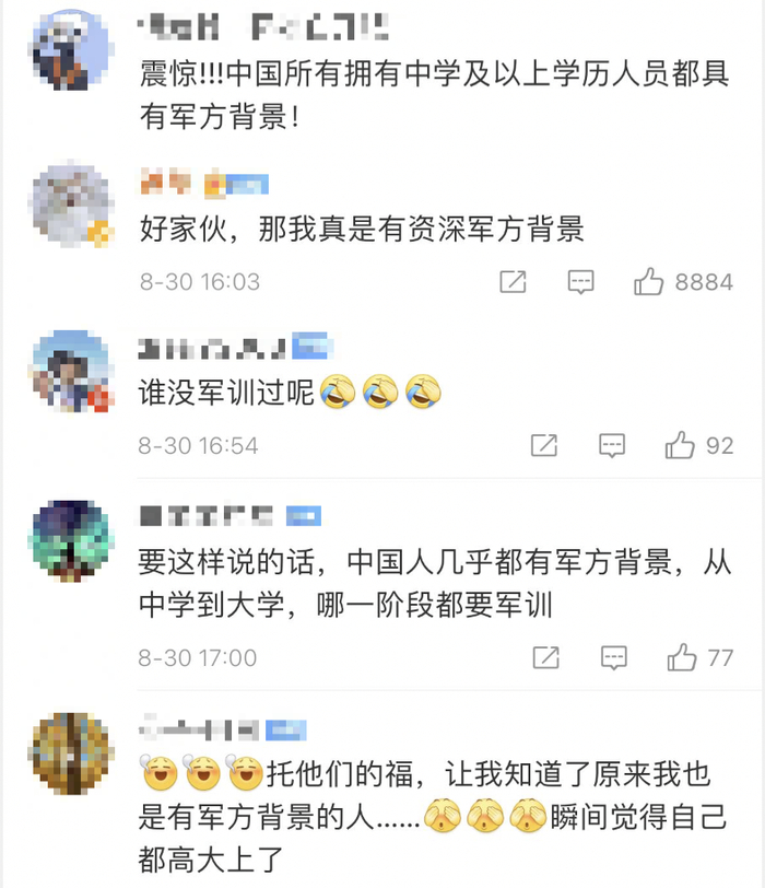 好家伙,有张军训照就是有军方背景了?