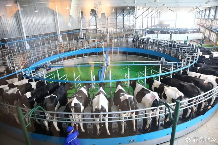 “上百头奶牛映入眼前,被机器挤出的鲜奶,经专用管道速冻后马上输送到大厅外的运奶车里,然后直接拉到工厂。