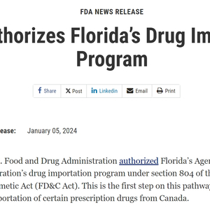 长期以来,许多州政府都希望能够从加拿大进口药物,为他们的医疗补助计划、政府诊所和监狱降低用药成本。佛罗里达州政府此前曾预期,通过从加拿大批发进口诸如糖尿病、艾滋、丙肝、精神病等药物,这个项目上线的第一年就能节约最多1.5亿美元。
