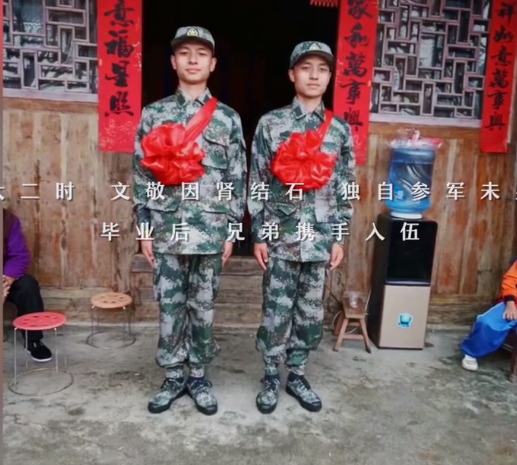2、双胞胎兄弟一个守国一个守家 贵州,哥哥文孝、弟弟文敬,一对苗寨双胞胎走出大山共赴军营。在部队,弟弟文敬参加狙击手比武,荣立个人三等功。哥哥文孝选择退役后回家照顾病重的奶奶,弟弟文敬带着二人的力量继续前行,创下一个又一个佳绩!(@央视军事)