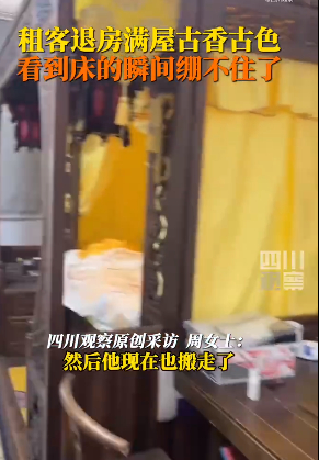 1、租客退租留下宫里宫气家具 2日,广东,一租客退租留下一屋子家具“古香古色”,房屋代管公司的工作人员收房时被震惊。(@四川观察)
