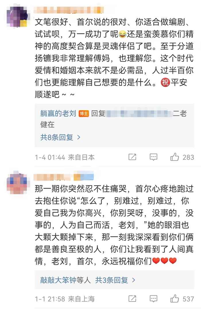 我两在一起生活了十五年,这十五年里除了产假那两个月,首尔没有一刻不在全力奔跑。有的时候社会舆论对女性的要求太过苛刻,一个为家庭付出这么多的人到头来成了别人口中的忘恩负义的陈世美,我很难过,也很愤怒!我和首尔都太了解彼此的底色了。如果她真的是一个自私自利的人我绝对不可能跟她生活这么久。相反,正是因为她的善良和包容我们才能一起搀扶着踏过泥泞的山丘。”