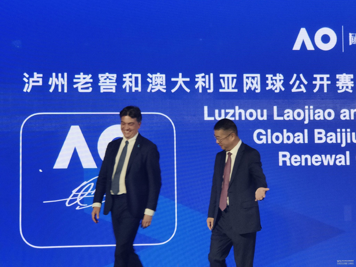 开赛前夕,澳大利亚网球协会首席商务官赛迪克.康纳利斯和泸州老窖常务副总王洪波在成都宣布,继2018年泸州老窖首次成为澳网官方合作伙伴后,双方再续五年之约:2024-2028年,泸州老窖将继续成为具有百年历史的澳网联合赞助商及官方合作伙伴,“国窖1573”成为澳网唯一指定白酒。