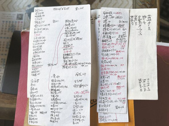 他最关心的是里面有当年上海滩常用的大量方言词语。他从书里梳理出吴语演变线索,如“阿拉”从宁波话向上海话的演变,专业书籍中没有记载,这些小说里却有。看书的时候,他把吴语画出来,做好记录。做记录他有自己的一套,一沓沓读书卡片全是他用白纸切好、打好洞,做成的活页,可贴可拆可分类。有了电脑后,他又将方言资料卡片在电脑里建了个“库”,使用更方便。