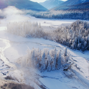 图为冬日的新疆阿勒泰地区布尔津县喀纳斯湖神仙湾景色。张真源摄