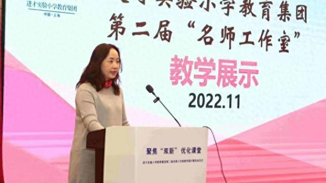 进才实验小学教育集团教研员、进才实验小学教育集团名师工作室主持人沈捷老师在集团教研室活动中评课。