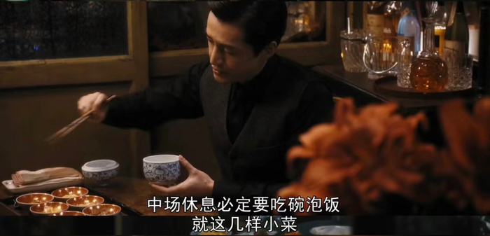 很多观众说《繁花》是半部美食剧,胡歌对此表示,“饮食不仅仅是食物,它也体现了人物和人物之间的关系,食物的背后包含了很多的意味在里面。泡饭就是能够让阿宝安心,最舒适的、落胃的一份食物。”剧中宝总在黄河路谈完生意,总会来到进贤路上的“夜东京”来碗泡饭。他也谈到:“能够用上海话来演戏,演的又是上海的故事,演的又是上海人,我会觉得是一种如鱼得水的感觉。”
