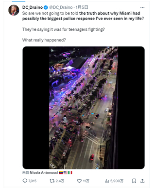 报道还提到,X平台上另一篇帖子内容称,迈阿密警方此次出警执法可能是“我一生中见过规模最大”的警方行动,然而官方没有告知公众真相,“他们说那是青少年打斗,到底发生了什么?”这则帖子内容目前已获5900万阅读量。↓