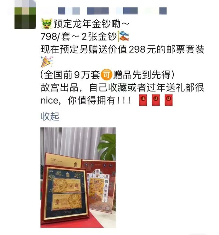 “预定龙年金钞,798元/套,