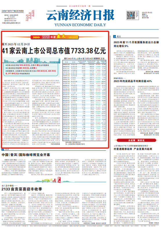 41家云南上市公司总市值7733.38亿元